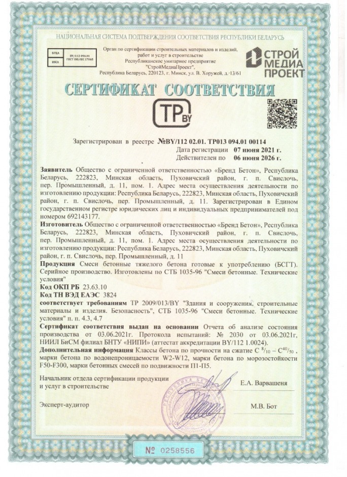 ООО "Бренд Бетон" предлагает купить качественный бетон собственного производства оптом и в розницу с доставкой на ваш строительный объект в Червени.